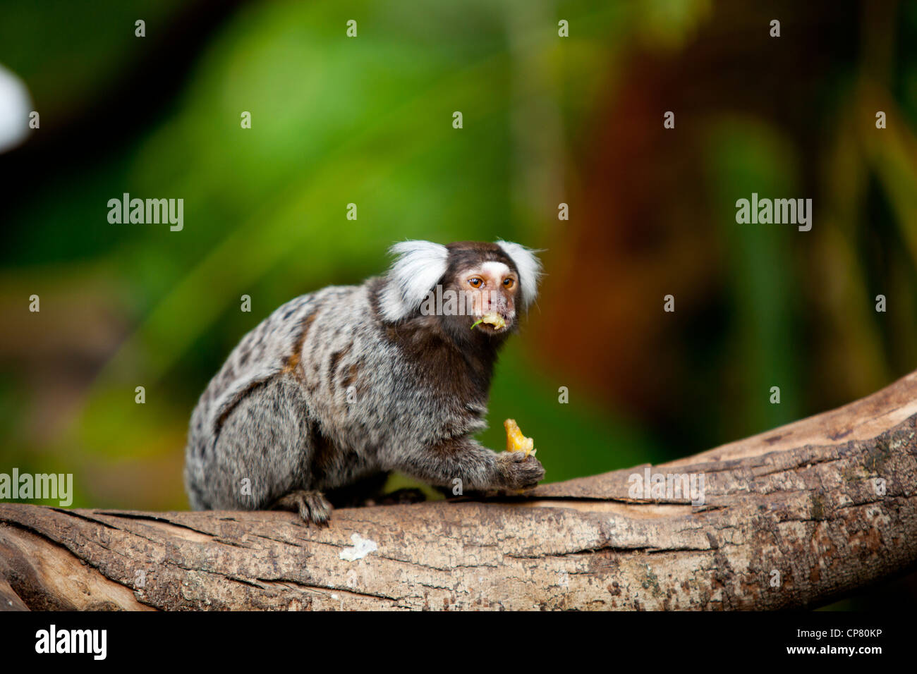 Ein Marmoset Affen Essen Obst In Einem Baum Im Butterfly World Klapmuts Sudafrika Stockfotografie Alamy